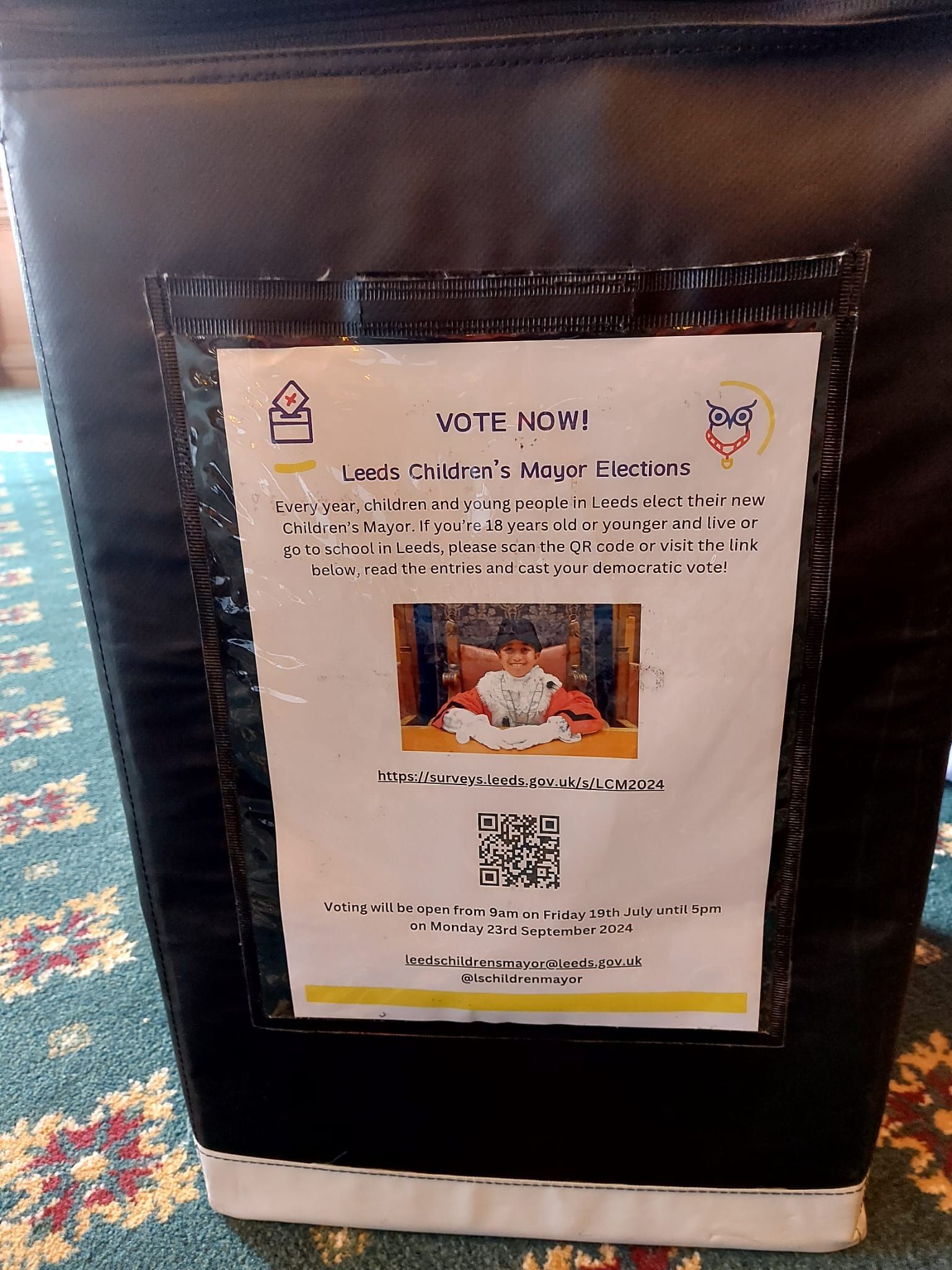 Jasmin attended the 'what to expect' session for the Leeds Children’s Mayor campaign/election and has now received her ballot box. This will be returned to the Civic Hall on the 23rd September by 5pm.
